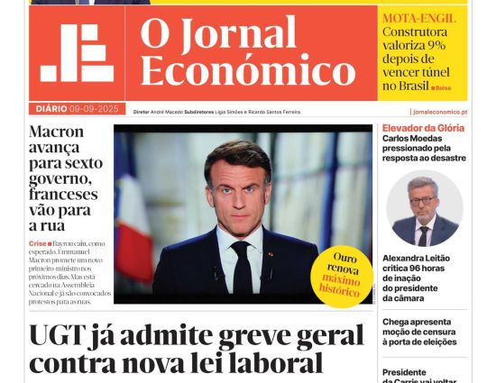 Veja aqui a primeira página do Jornal Económico desta terça-feira, 9 de setembro:
