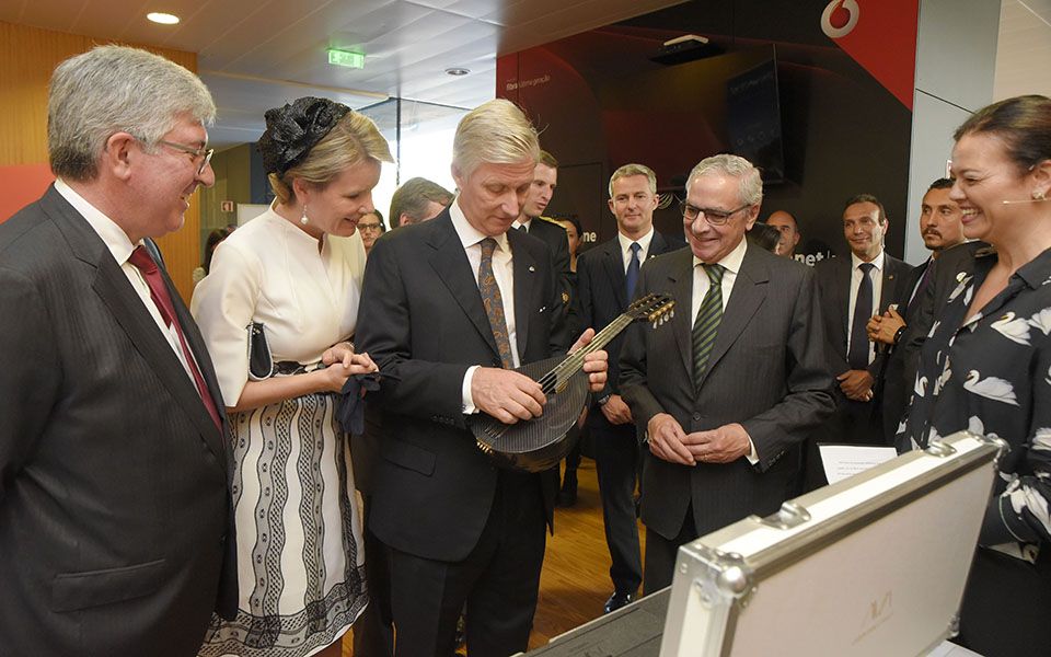 Na Universidade do Porto, que visitaram, na sua passagem pelo norte, Philippe e Mathilde elogiaram as “maravilhas tecnológicas” aí criadas. Como o bandolim em fibra de carbono, que o rei dos belgas dedilha na imagem, criado pela AVA Strings, no Gabinete de Desenvolvimento de Produto do Parque de Ciência e Tecnologia da U.Porto (UPTEC). A empresa, distinguida com um iF Design Award em 2018, utiliza este tipo de materiais para a criação de instrumentos mais estáveis e resistentes às variações da temperatura e humidade ambiente, com propriedades acústicas de excelência. No UPTEC, Clara Gonçalves, a diretora executiva, apresentou em forma de números o trabalho desenvolvido nos últimos dez anos. Destacou nomeadamente o impacto estimado no Produto Interno Bruto das empresas aí instaladas: 188 milhões de euros e as exportações, que representam 60% do volume de negócios dessas empresas. O Reitor da U.Porto, António de Sousa Pereira, que em Lisboa assinou um protocolo com a Universidade de Ghent, destacou a importância das relações bilaterais entre Portugal e a Bélgica e congratulou-se pela maior aproximação entre os dois países.